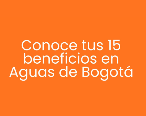 Conoce los 15 beneficios que tienes en Aguas de Bogotá En Aguas de Bogotá pensamos en ti y en tu bienestar. Por eso, desde tu primer día de vinculación cuentas...Leer más